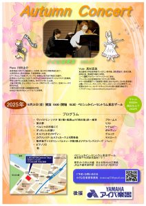 Piano 臼田圭介 Violin 高杉直美 ◈日時 2025年10月31日(金) 19:00開演(18:30開場)/ 21:00終演