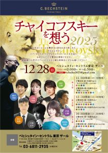 今年はいよいよ交響曲全6曲をお送り致します。やるなら今だ! ピアノオーケストラでチャイコフスキーの人生を辿り、お好きなだけ交響曲を堪能できます。 精鋭揃いの若手ピアニストによる心踊る演奏会にぜひお越しください。 有森博 演奏:有森博、岡田芳樹、小嶋早恵、高井玄樹、伊達広輝、谷口和真、戸澤正宇、間世田采伽 日時:2025年12月28日(日) 入場料:各部2,000円、通し券4,500円