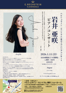 ベヒシュタイン・セントラム東京ショールームで開催するミニコンサート。今回は、ピアニストの岩井 亜咲さんをお招き致します。 ポーランドを代表する作曲家、カロル・シマノフスキの音楽を、ベヒシュタインの温かで多彩な音色と共にお楽しみいただければと思います♪岩井 亜咲