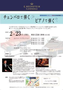 出演:本田 聖嗣(ピアノ) 辻本 彩(チェンバロ、ベヒシュタイン・シューレ音楽教室講師)
