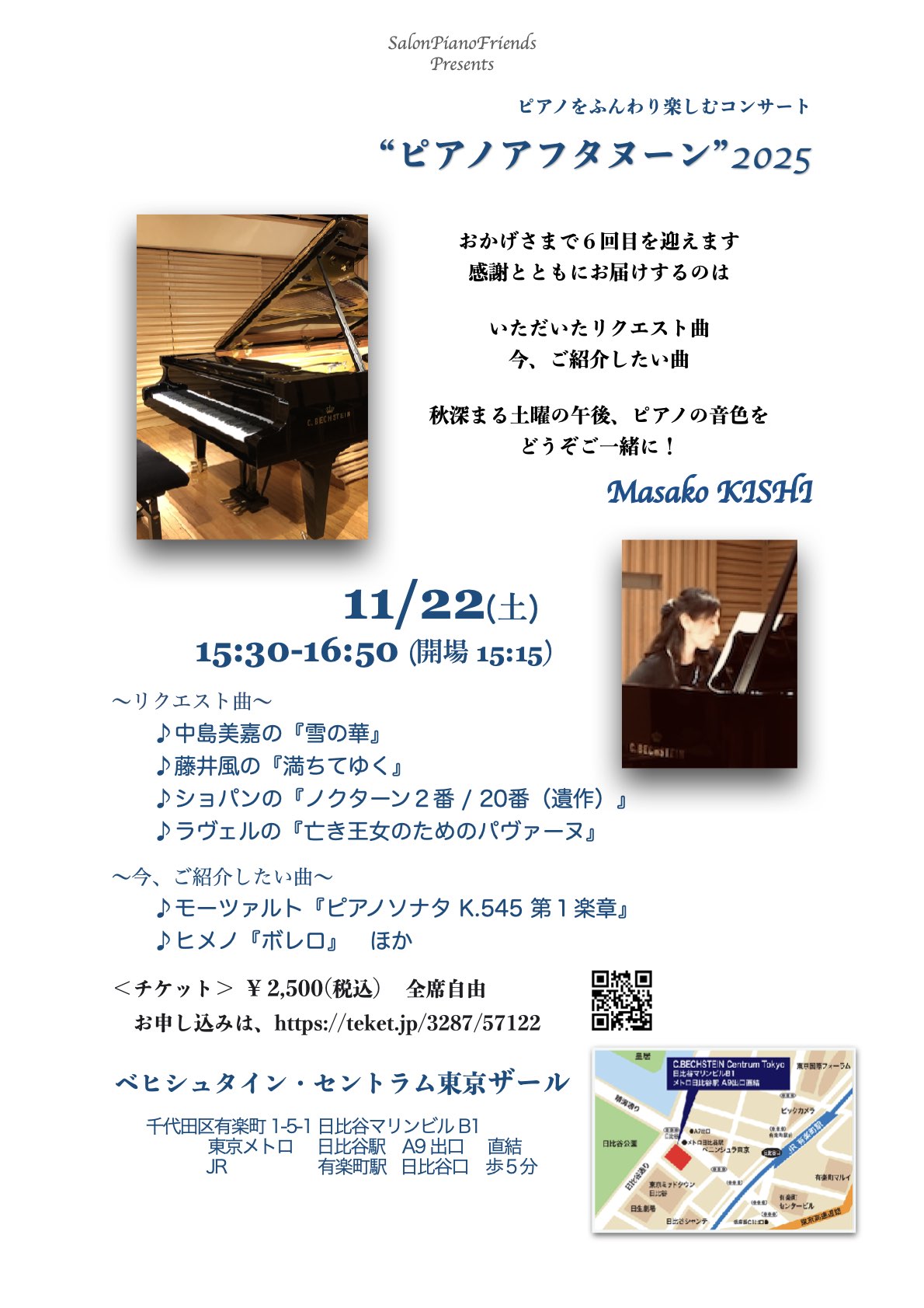 秋深まる土曜の午後、ピアノの音色をどうぞご一緒に!
