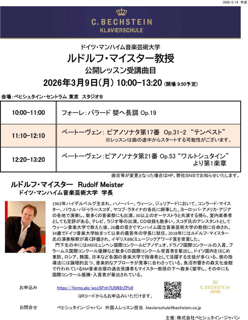 3/9公開レッスンのプログラムが更新されました(楽章など)