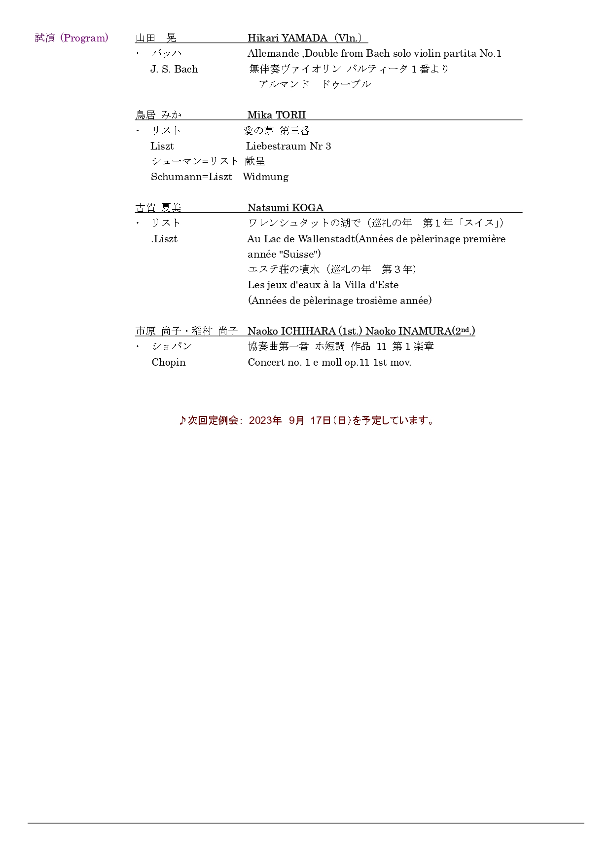 日本(主に東京近郊)を本拠地として活動する音楽家の非営利団体です。