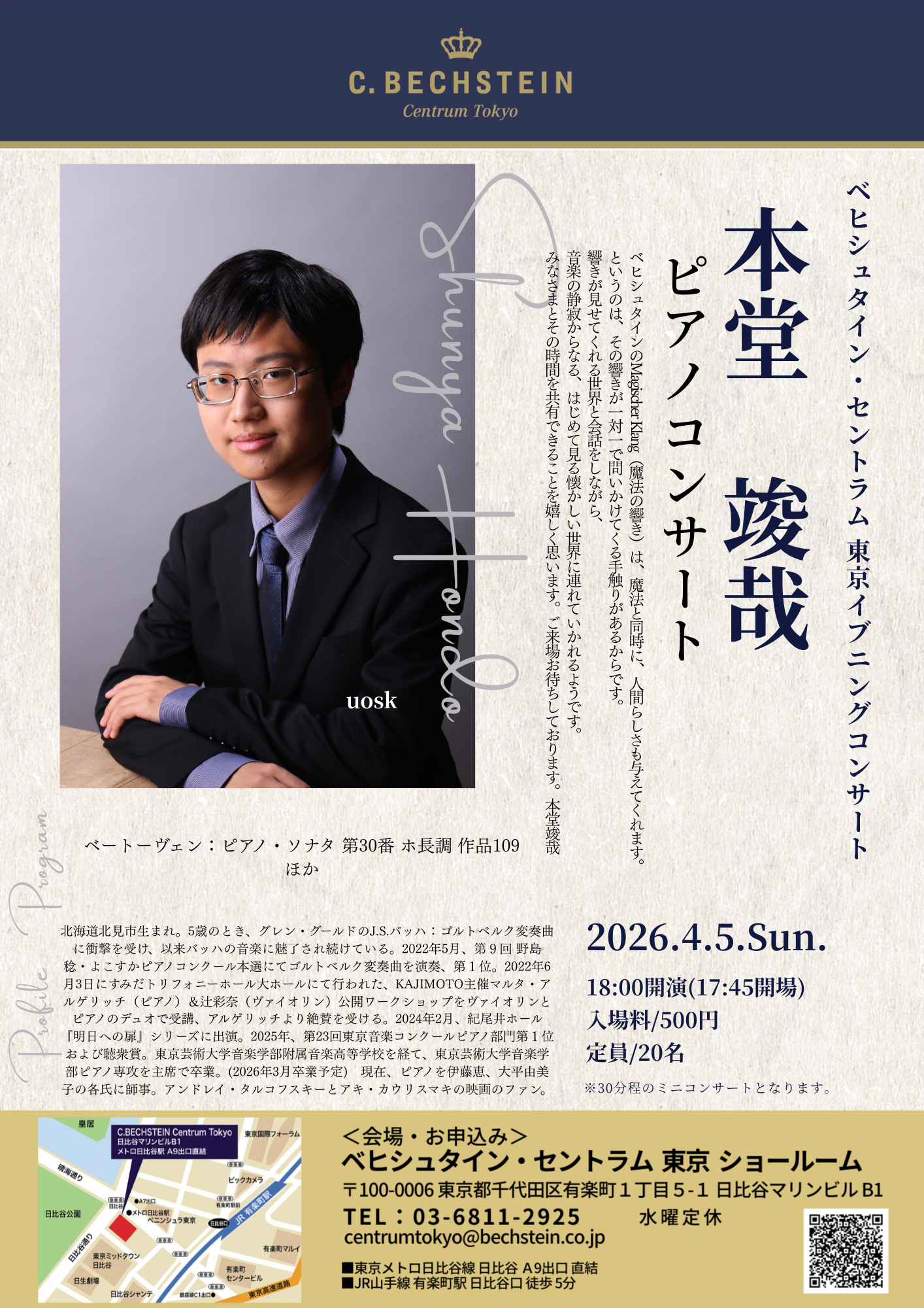 ベヒシュタイン・セントラム東京ショールームで開催するミニコンサート。