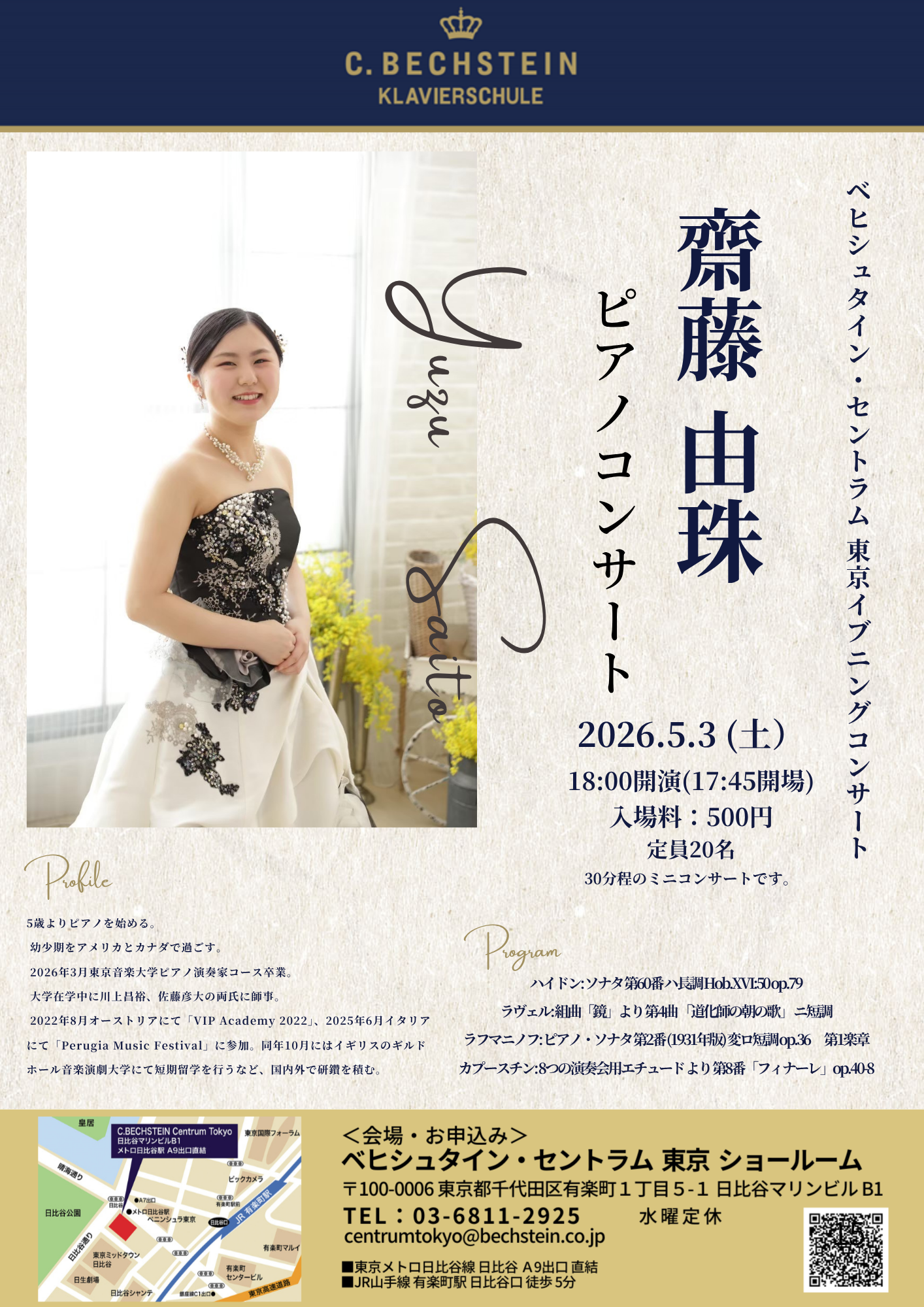 2026年3月東京音楽大学ピアノ演奏家コース卒業。
