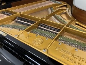 この時代のベヒシュタインはスピーキングレングス以外の共鳴部分を無くす事で、音楽に必要な本来の音のみをピアノの響板を始めとする木部で共鳴させ、美しいクリアな音を目指していた時代の設計でした。