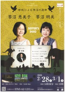 国内外で活躍してきたピアニスト姉妹、蓼沼恵美子と蓼沼明美による特別なピアノデュオを2月28日(土)と3月1日(日)の2日間連続で富山・宇奈月温泉の老舗温泉旅館「延楽」にて開催されます。