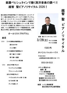 銘器ベヒシュタインで聴く西洋音楽の調べ!! 越智 聖ピアノリサイタル2026!