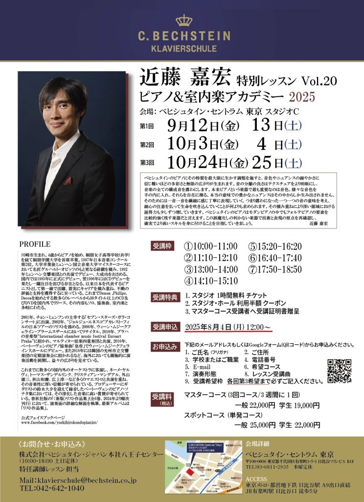 秋恒例の近藤嘉宏先生による3回シリーズの最終回である第3回のレッスンが10/24,25に開講されます。
